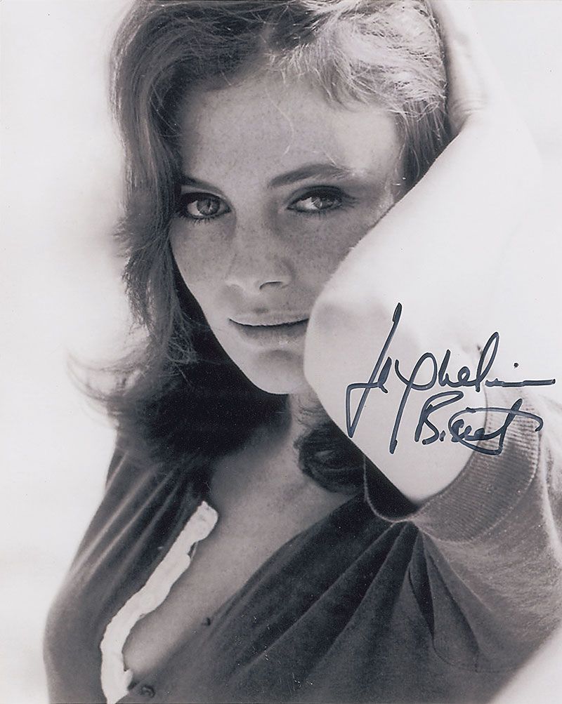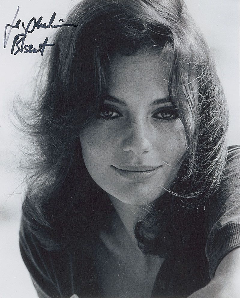 Two pretty satin-finish 8 x 10 photos of a younger Bisset posing outdoors, each signed in black felt tip. In very fine condition.