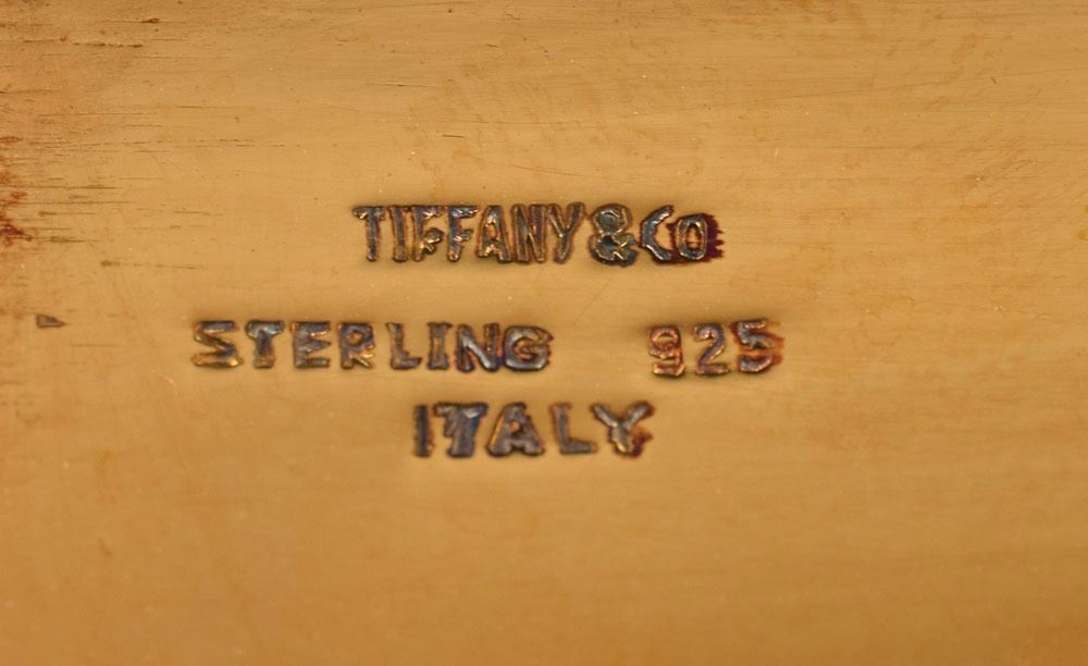 Gold vermeil on sterling silver cigarette case by Tiffany & Co., gifted by Jackie Kennedy to Helen Lempart Westbrook in 1966. The elegant case measures 3.5 x 2.25 x .25, and is engraved inside the spring-loaded cover, "1966, For Helen, with appreciation and affection, JBK." The maker's hallmark is stamped above, "Tiffany & Co., Sterling 925, Italy." In fine condition. Accompanied by a light blue Tiffany cloth bag. The recipient, Helen Lempart Westbrook, worked in the Kennedy White House.