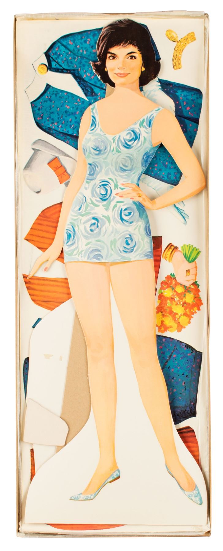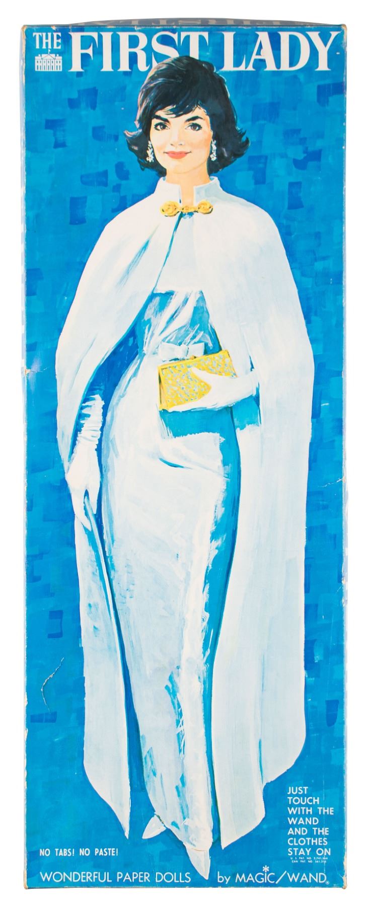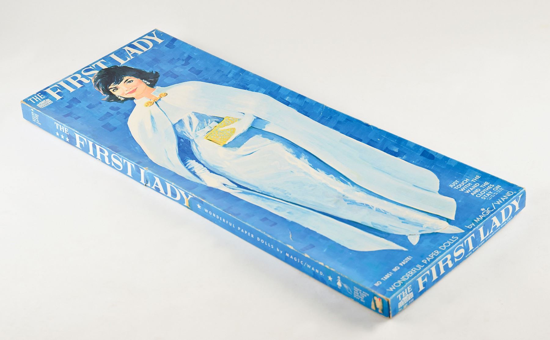 The First Lady Jacqueline Kennedy cardboard doll in original 1962 box: The cardboard First Lady measures