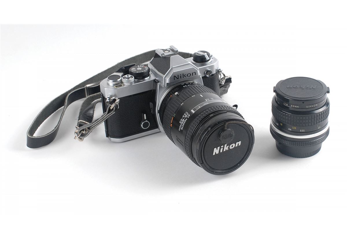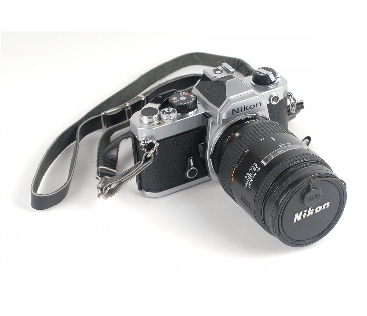 Jacqueline Kennedy’s personally-owned and –used Nikon FM 35mm single lens manual focus camera, measuring 5.5 x 6 x 3.5 with the AF Nikkor 28-85 zoom lens attached. Manufactured between 1977 and 1982, the camera includes its Nikon lens cap, adjustable black leather shoulder strap, the original brown leather Leitz Wetzlar camera case bearing an affixed ‘inspected baggage’ customs label, and a Nikon Nikkor 28mm 1:3.5 camera lens. The camera is in fine condition, with expected wear from use. Mild wear and scuffing to the case, otherwise fine condition. Accompanied by the original warranty and instruction manual for the Nikon zoom lens, a copy of the Sotheby’s receipt, as well as three copies of images featuring Jackie holding cameras—one which appears to possibly be this example, or a similar version.