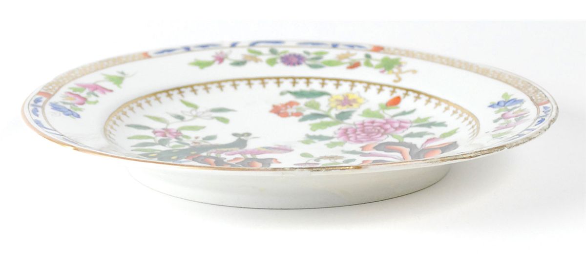The ‘Peacock’ pattern originated in Chinese Export porcelain around 1760, with services of this design eventually making their way to Europe and South America. In 1815, the Spode family had begun to reproduce the pattern, most likely as replacements for the depleted Chinese Export services. The family’s design proved to be a success and was produced continually for 150 years. The Coalport version of the pattern was quickly put into production to meet the incredible original demand, but never approached the success of the Spode offering. Surviving examples of this Coalport pattern are quite uncommon.