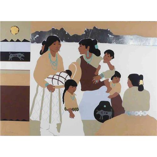 Jacqueline Rochester(late 20th C), Serigraph, "Taos Gathering", Artist Proof/Edition 100, 19" x 26, Pencil signed lower right.