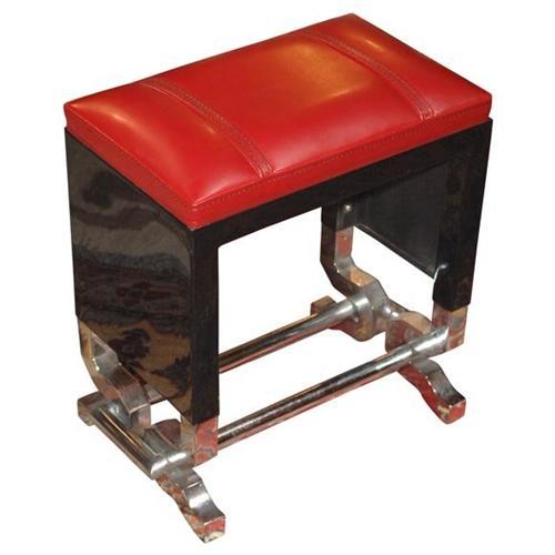 Vibrant Deco Piece; Red Leather Upholstered Stool with chrome legs