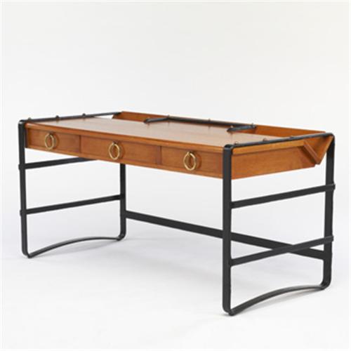 An excellent example of Adnet's designs featuring three drawers below a solid writing surface with two angled recesses for book storage.
