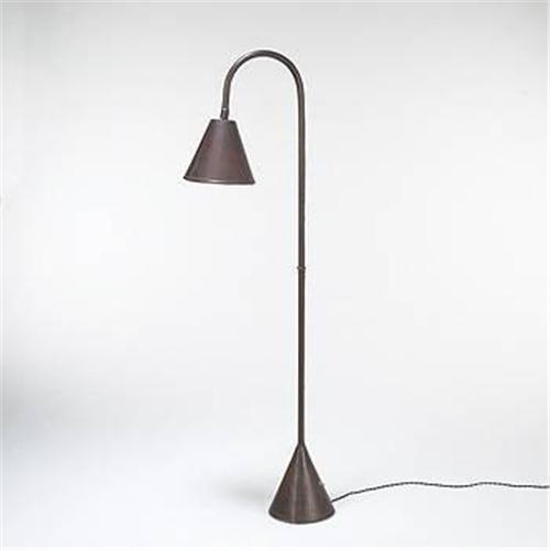 Jacques Adnet<BR>floor lamp<BR>France, c. 1950<BR>leather over steel, brass<BR>18"w x 9"d x 58"h<BR><BR><BR><BR><BR><BR><BR>