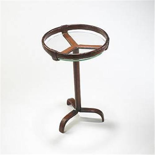 Jacques Adnet occasional table France, c. 1950 leather over steel, glass 9.75"dia x 15.25"h