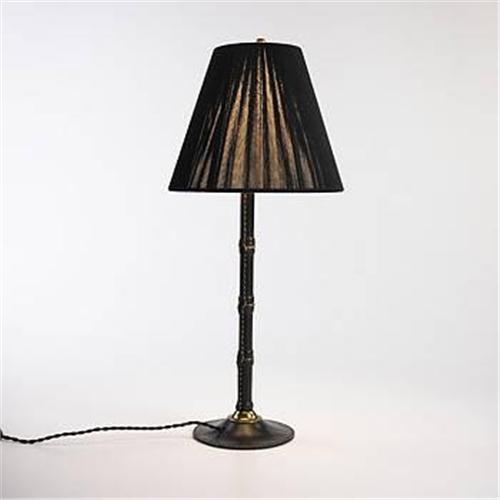 Jacques Adnet<BR>table lamp<BR>France, c. 1950<BR>leather over steel, brass<BR>10"dia x 23"h<BR><BR><BR><BR><BR><BR><BR>