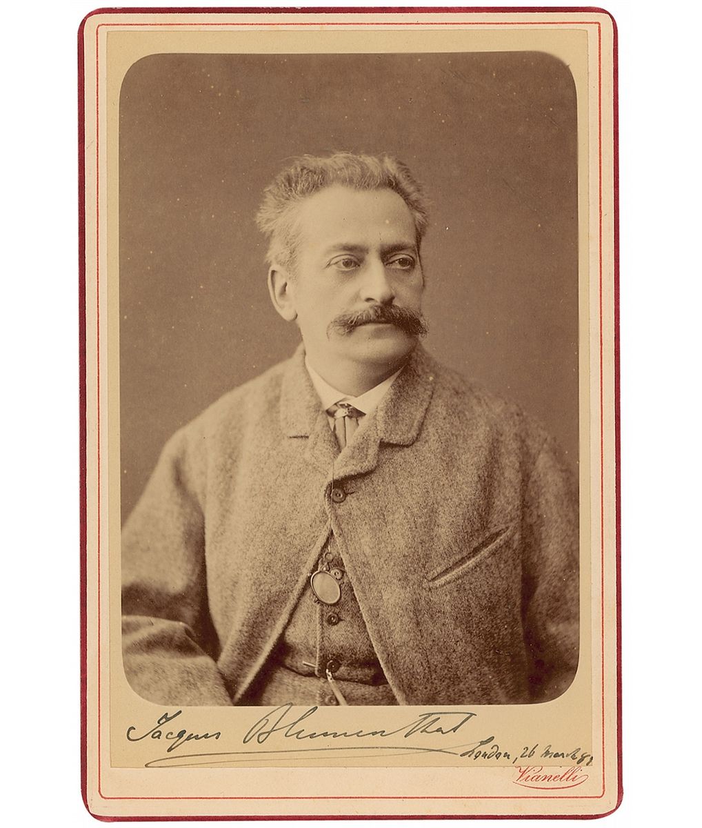 German pianist and composer (1829–1908) who became the court pianist to Queen Victoria. Original 4.25 x 6.5 cabinet photo by Fratelli Vianelli of Venice, signed at the bottom of the image in black ink, “Jacques Blumenthal, London, 26 March 82.” In fine condition, with a few scattered light surface marks to image.