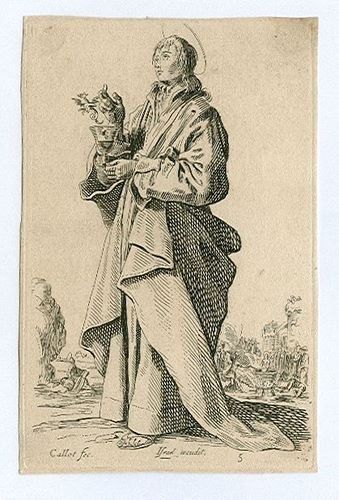 Jacques Callot "St. John" Etching - St. John From The "Large Apostles" Medium: Etching. Printed By Israel On 18th Century Laid Paper. Size: 5 1/2 X 3 1/2 Inches (Plate) - Professionally Framed & Matted - Comes With Certificate - -