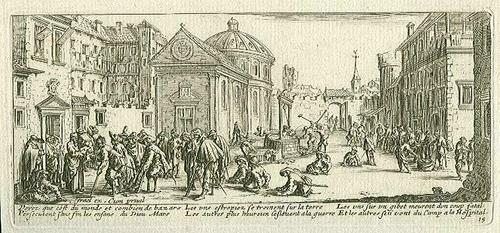 Jacques Callot "The Hospital" Etching - Plate 15 From The Jacques Callot Suite "Grandes Misères De La Guerre (Miseries And Misfortunes Of War)" Printed Circa 1730; This Is The Second Edition, The Plates Re-Engraved By Leon Schenck (Originally Issued In Paris, 1633). Size: 3 1/4 X 7 3/8 Inches (Plate) On Laid Paper. - Professionally Framed & Matted - Comes With Certificate - -