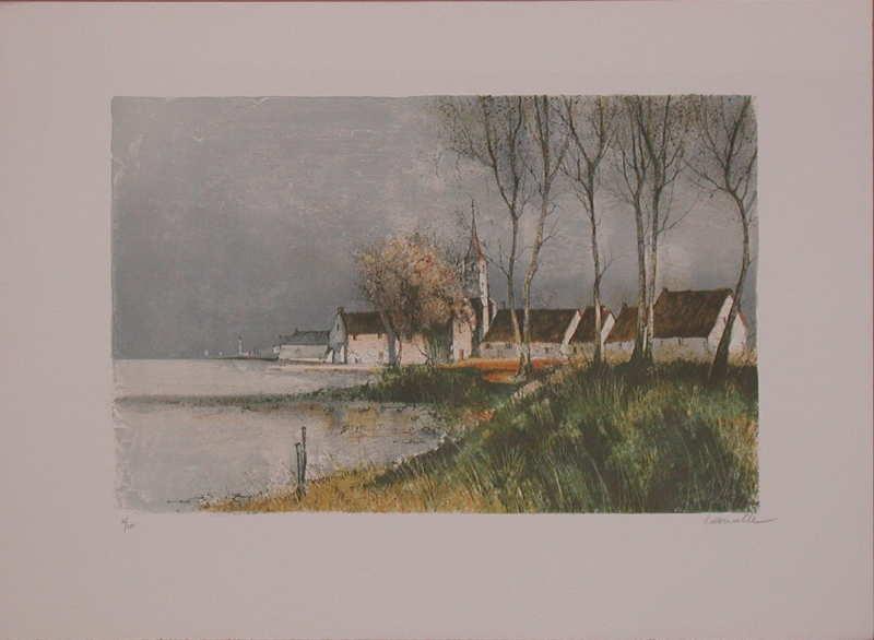 A typical landscape by the popular French painter released in 1981. Printed in France at I.M.A.G.E.S. 22x30 in. on Arches paper, signed in pencil and numbered in an edition of 275. Domestic shipping-$20, International depends upon location.