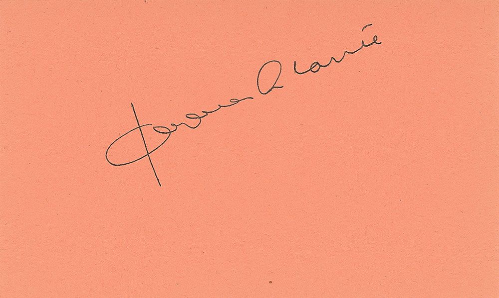 Vintage ink signature, “Jacques Plante,” on a peach 5 x 3 card. In very fine condition.