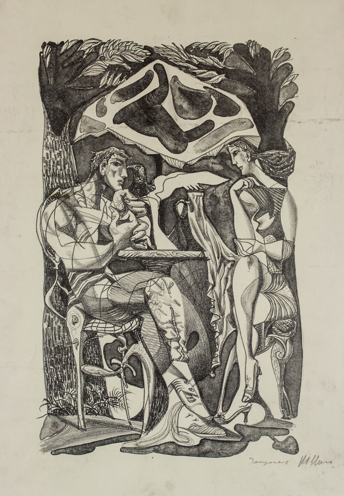 Lithograph on paper. Featuring cubist portrait. of a man and woman. Signed Jacques Villon on the lower right corner. Attributed to Jacques Villon (1875-1963, French). 50 x 33 cm (19.6 x 13.0 inches). PROVENANCE: Upper New York estate