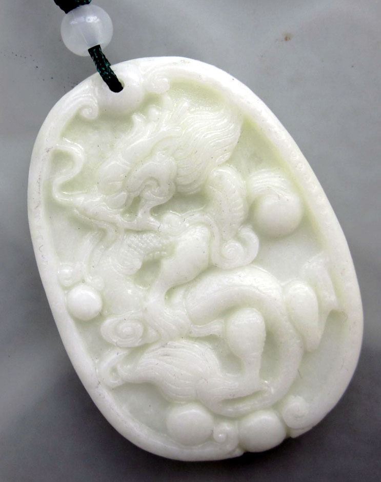 Jade 242cts of Real White Jade Fortune Dragon Pearls Amulet