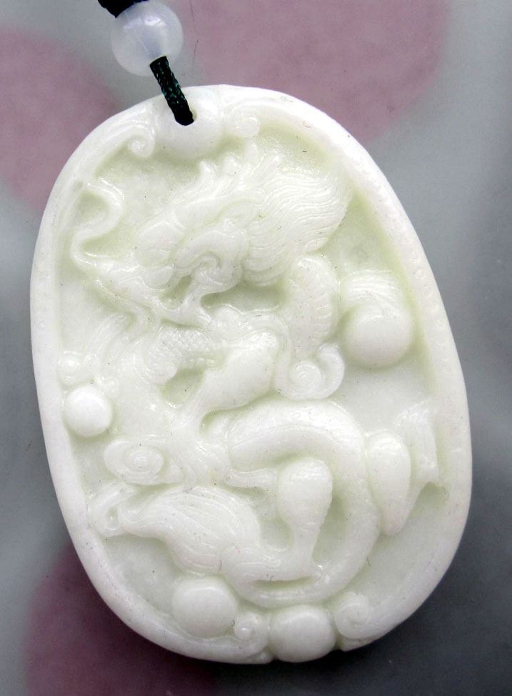Jade 242cts of Real White Jade Fortune Dragon Pearls Amulet