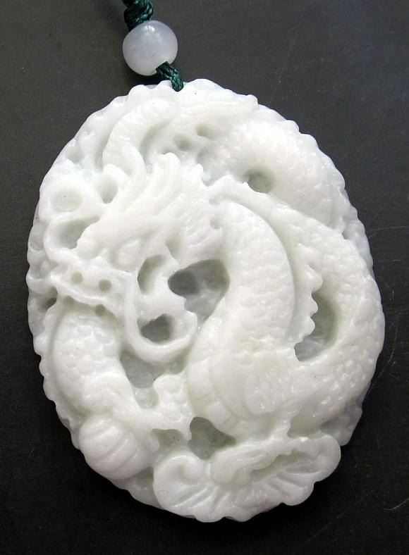 Jade 255cts of Real White Green Jade Super Power Dragon Amulet