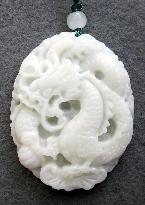 Jade 255cts of Real White Green Jade Super Power Dragon Amulet