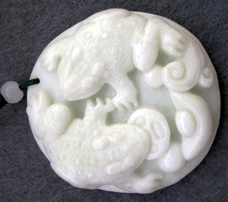 Jade 280cts of Real Jade Two Fortune Toad Frogs Coin Yuanbao Money Amulet
