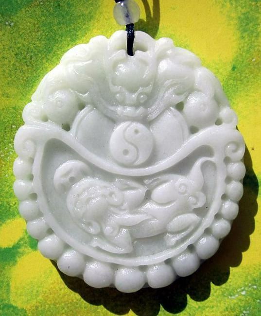 Jade Asian Decor 258cts Real Jade White and Green Tai-Ji And Pi-Xiu Dragon Coin Amulet