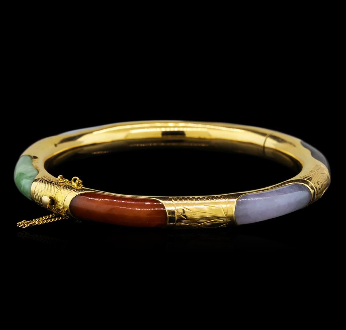 Jade Bangle Bracelet - 14KT Yellow Gold. Total Weight: 22.5 grams.