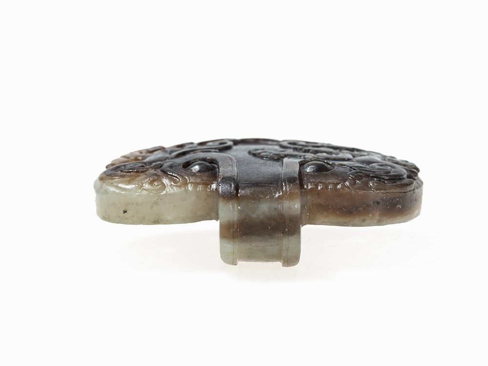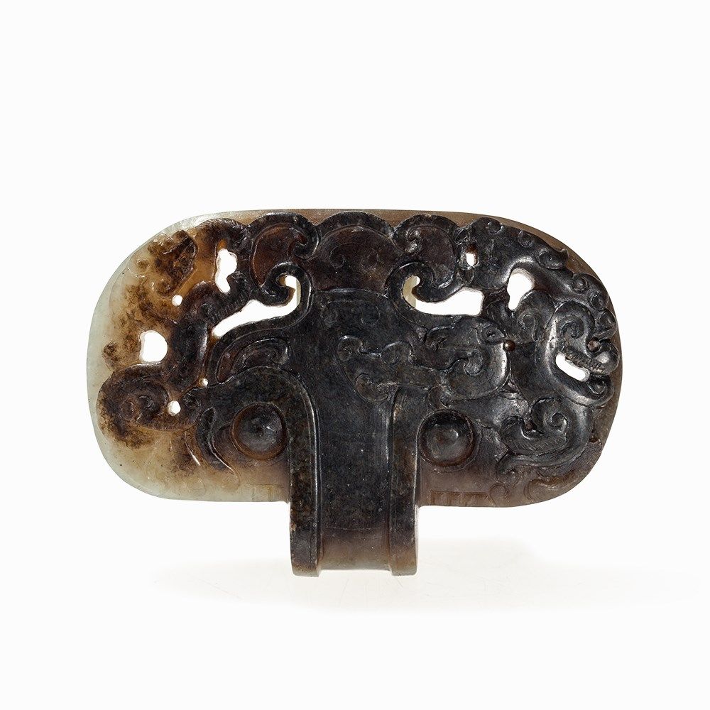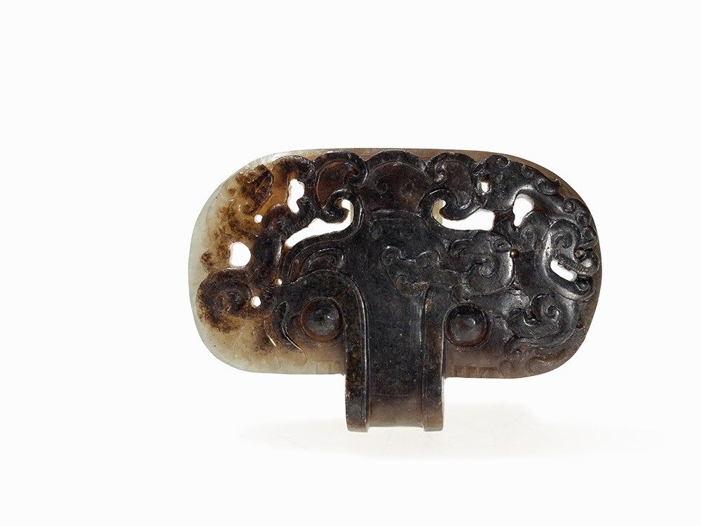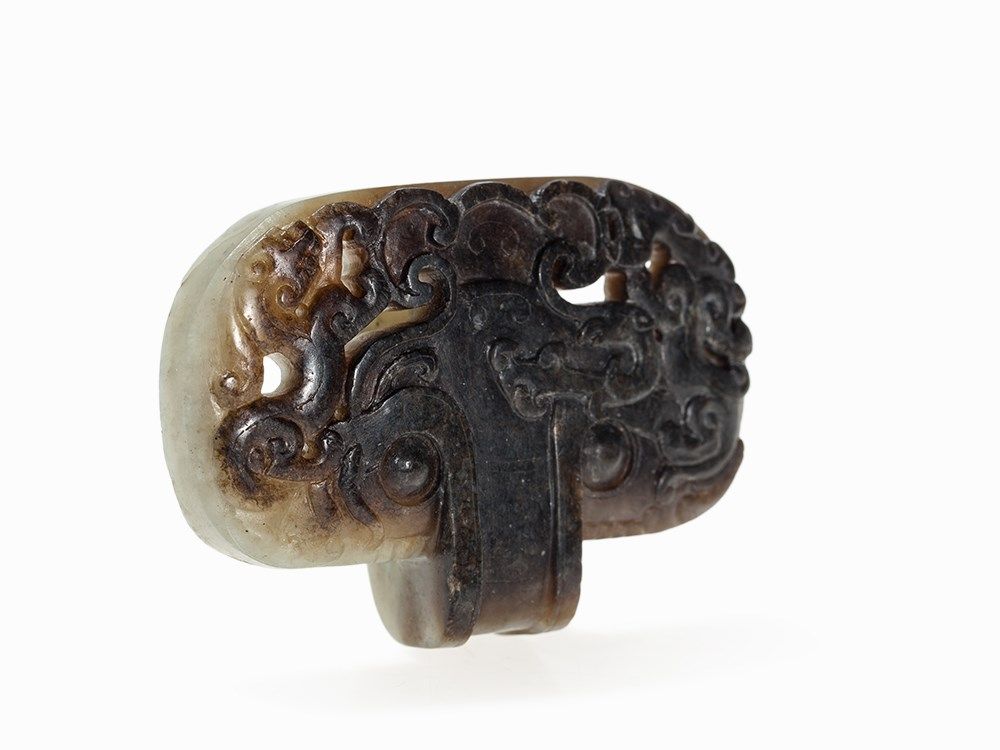 Jade Belt Buckle in Ruyi Shape with Mythical Creatures, Ming