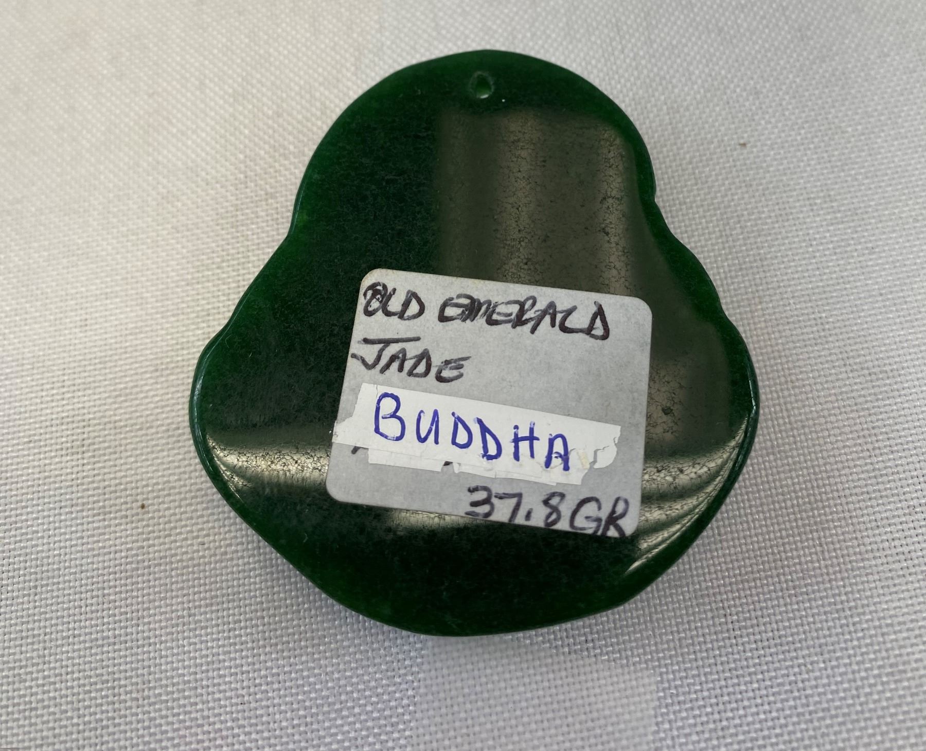 Jade Buddha Pendant, 2"x2", 37.8g, Presidium Tested