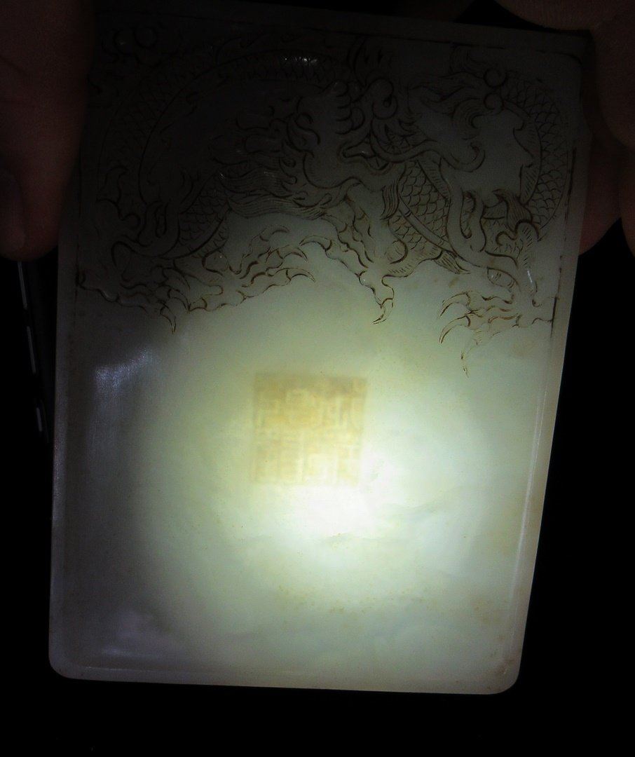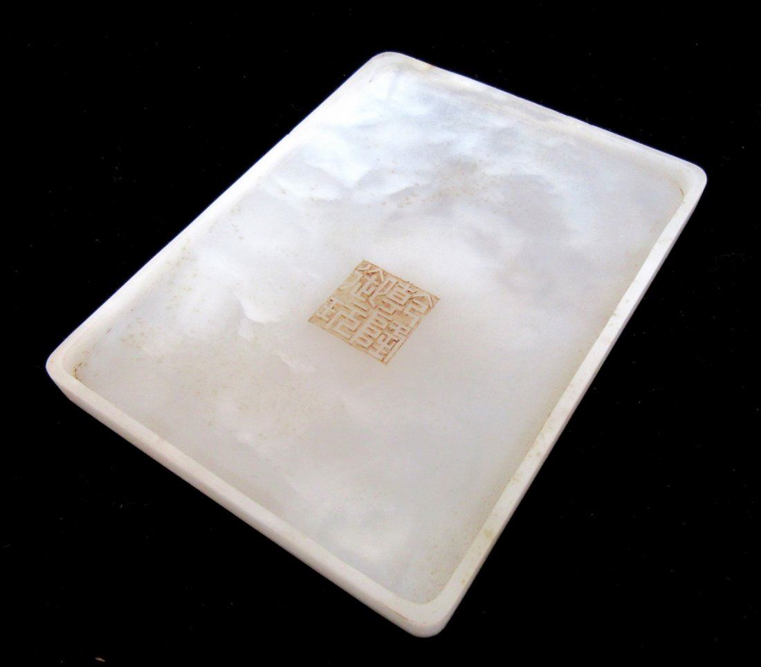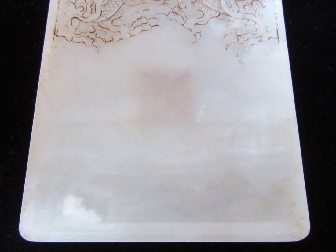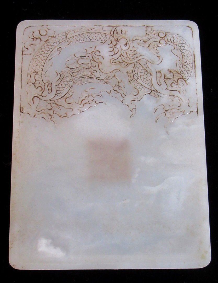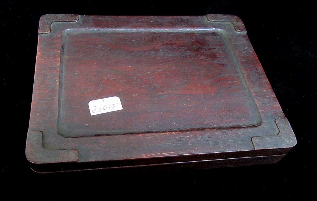 The top most carved with a dragon image, the back neatly inscribed with the maker's mark. All within a fitted and lidded rosewood box.
