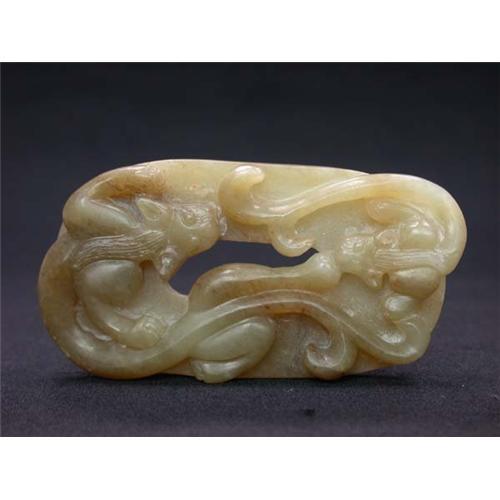 <tr><td>Title:Jade Double Dragon Disc, Pendant</td></tr>