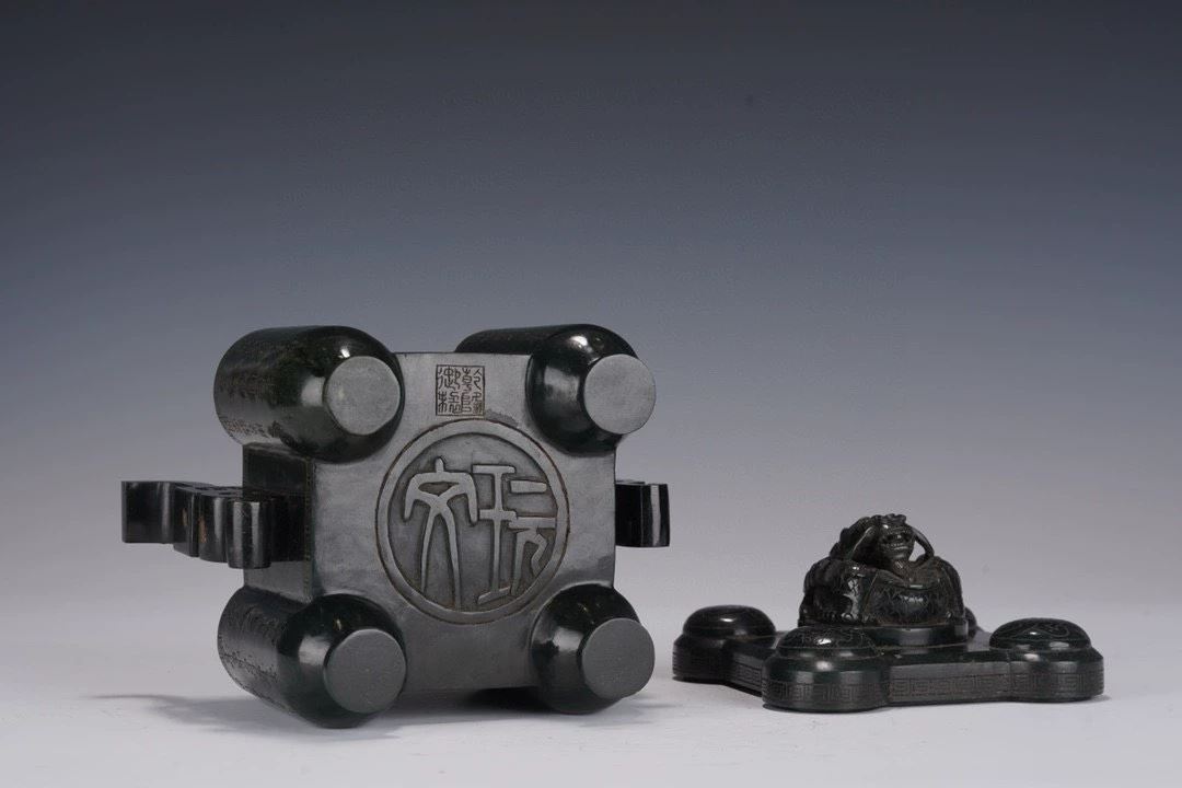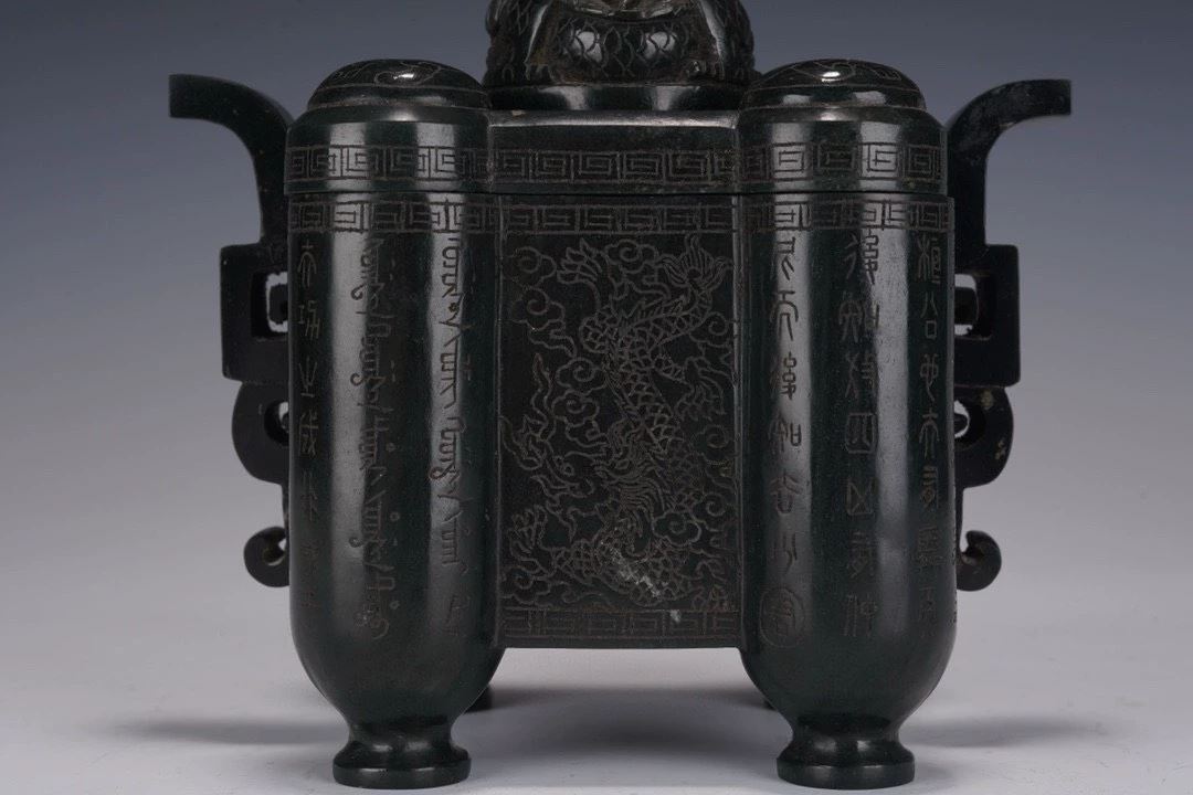 This exquisite jade seal is intricately carved with a detailed dragon design, showcasing the fine artistry of jade carving. The dragon, a symbol of power, strength, and good fortune in Chinese culture, gracefully wraps around the seal's body, adding a dynamic and auspicious element to the piece. The jade's rich green hue further enhances its elegance, making this seal a beautiful representation of both craftsmanship and cultural symbolism.