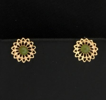 In 14K yellow gold, each earring contains one 3mm round jade gemstone. The earrings are 3/8 inch long. .6g