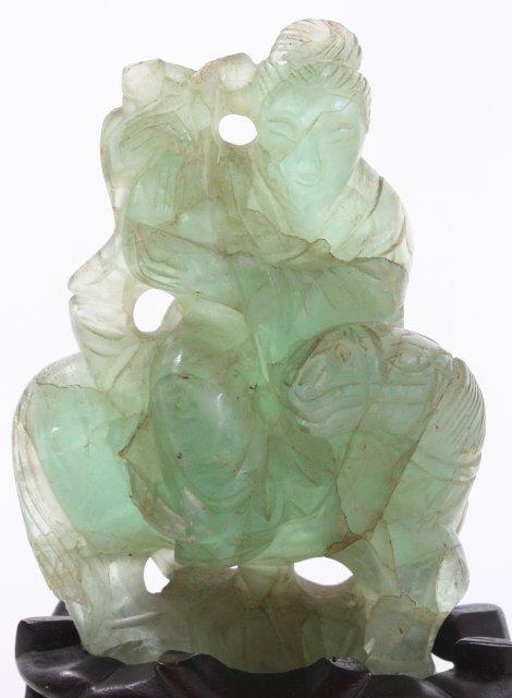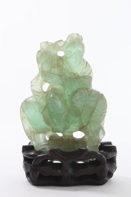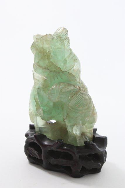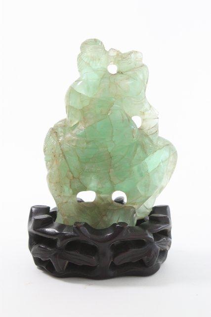 Approx. 5" x 3.25" jade alone on wood stand. Please read our terms of sale.