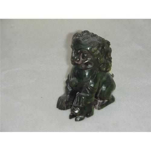 Jade Carving of a Fu Lion. Dark green jade, 4" tall x 3 1/4" long x 2" wide.