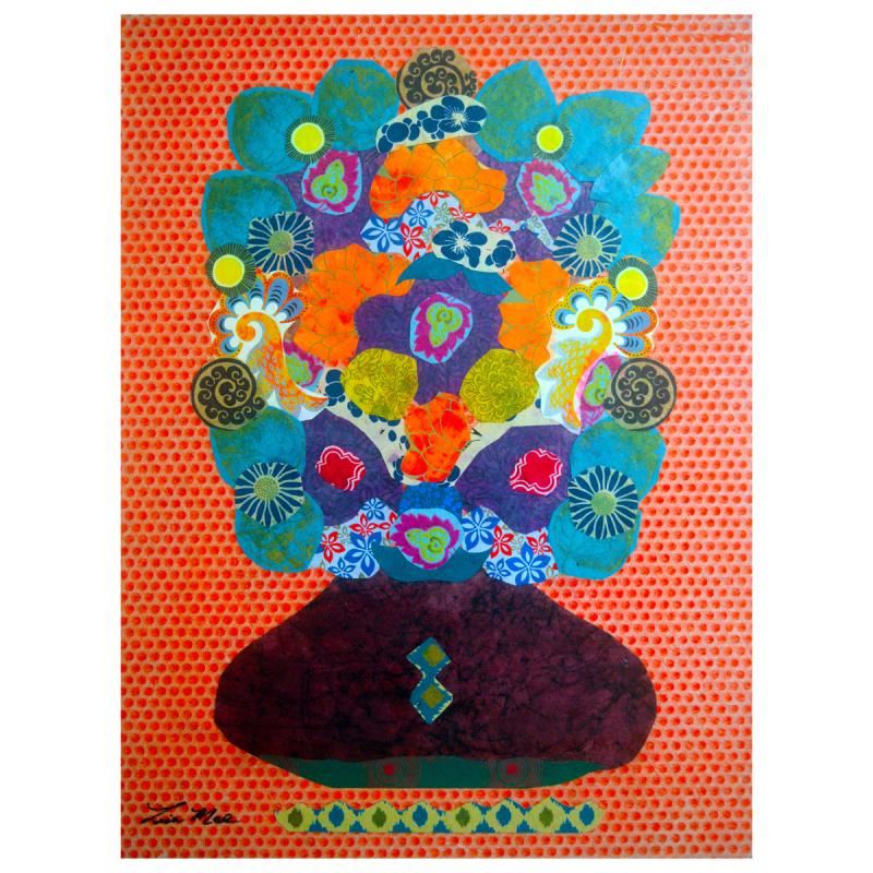 "Jade Leaf Bouquet" is an original mixed media painting on canvas by Lisa Mee. Incorporating acrylic and paper, this piece is hand signed and comes with a letter of authenticity. Measures approximately 18" x 24".