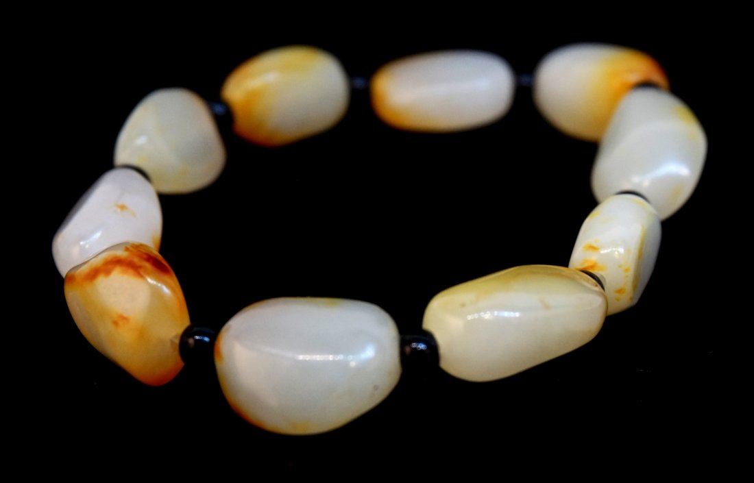 A white jade bracelet with 'pebble' beads. NO RESERVE! ! Most items in this sale have no reserve