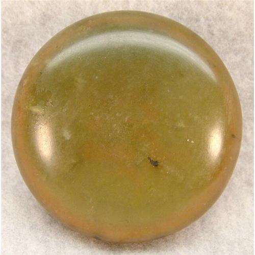 Origin: China,<p>Age/Period: ca.18th century, Qianlong period, Qing Dynasty,<p>Dimensions: 2" dia., 7/8" h.;<p>A splendid, green nephrite jade scholar's seal paste box, c.18th century, Qianlong period. The jade is a translucent, light green with amber-green flushes. It is masterfully carved. The slightly domed top is very thinly carved. The body is deep and also very thinly carved. The mouth rim has a raised lip to facilitate holding the top. The body rests on a short, flat foot. You can see how well carved and translucent this is by examining enlargements #5 and #6. Items such as this would grace the desks of scholars and hold vermillion seal paste. Vermillion remnants are still evident in the recesses of this box.<p>Condition Consensus: Very Fine condition, without any injury or repair.
