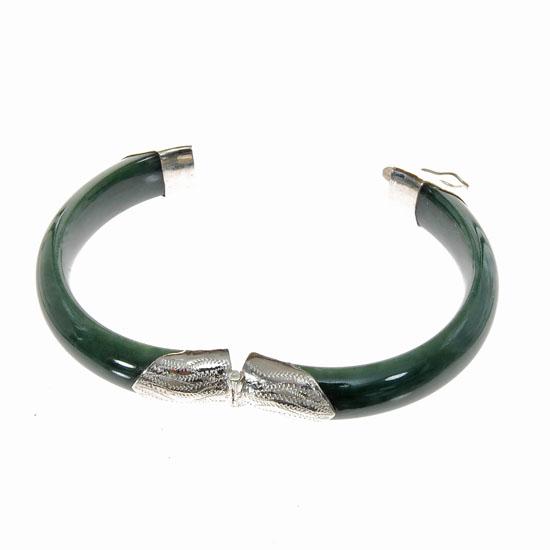 Fine green jade with sterling hardware; 2.375" inside diameter
