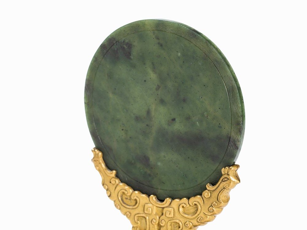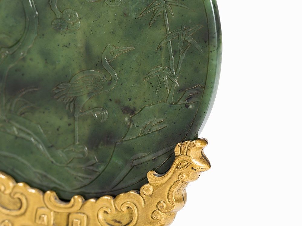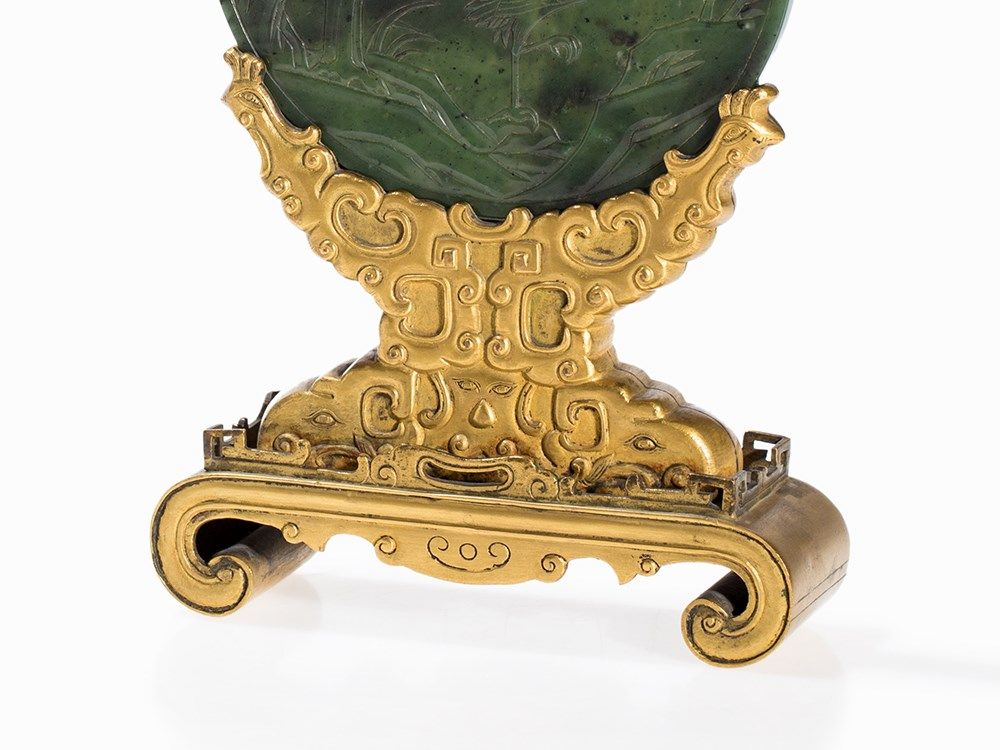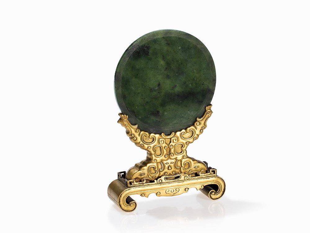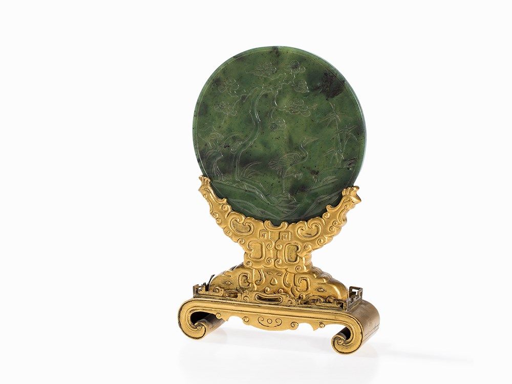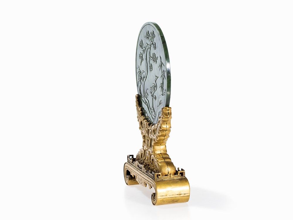 Jade Table Screen with Gilt Stand, 18th/19th C.
