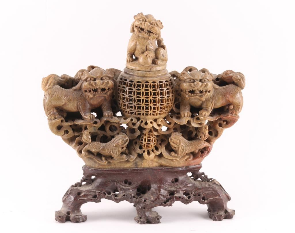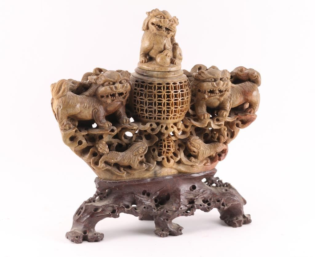 Beautiful ornate jade urn, measuring 12" tall by 11 1/2" wide.