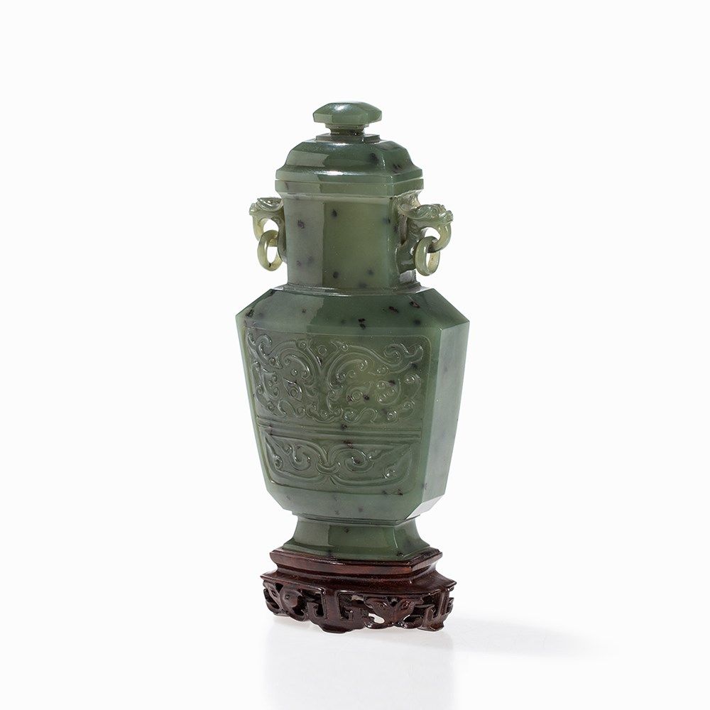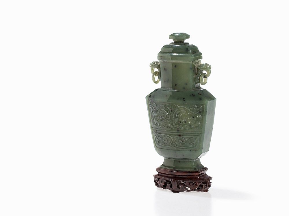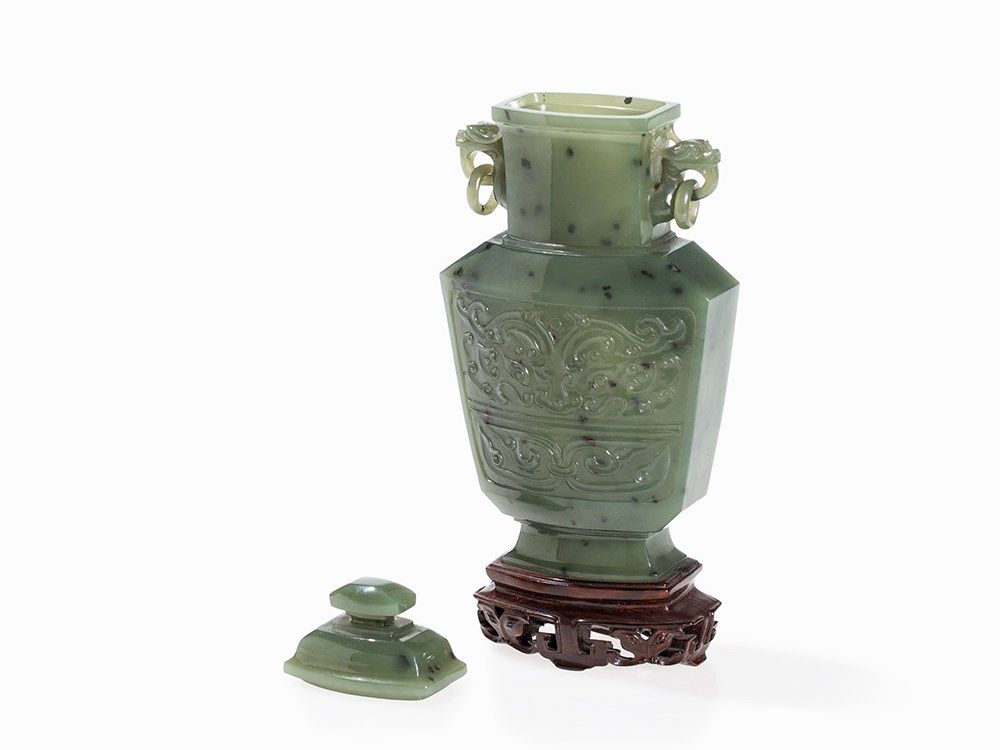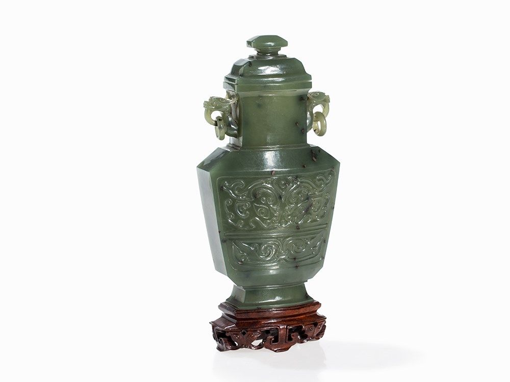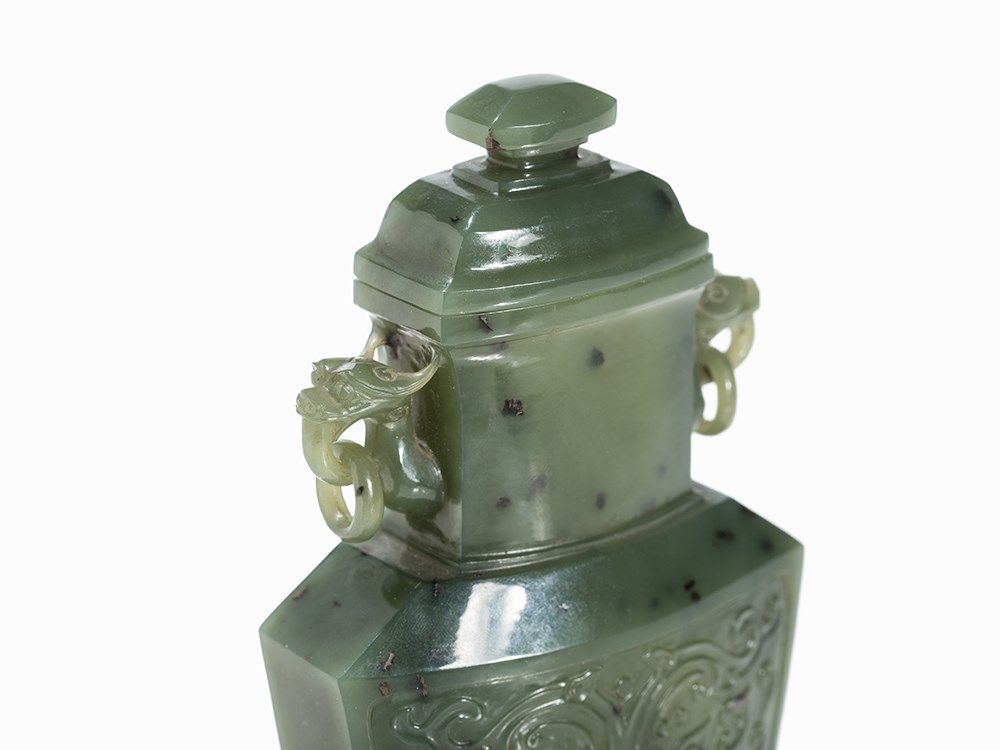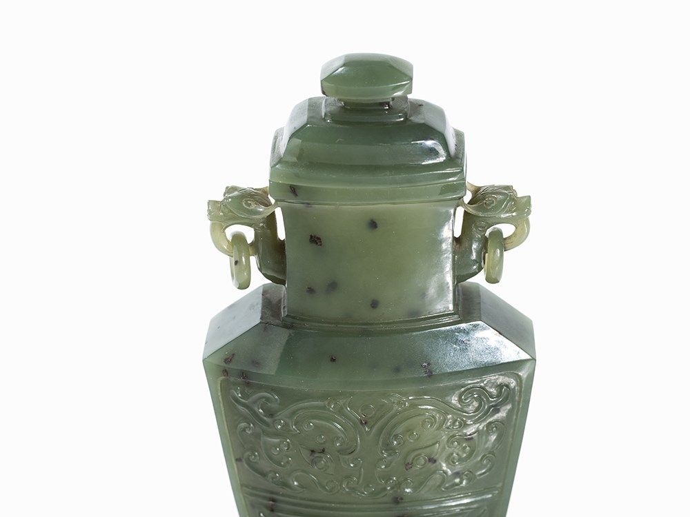 Jade Vase & Cover HU with Mythical Beast Handles, 19th/20th C.