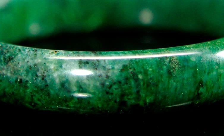 ****** Jadeite Bangle ****** One Women's, Natural Jadeite Bangle / Main Stone: Natural Jadeite / Shape: Round / Total Carat Weight: 226ct / Weight of item: 45 grams / Color: Mixed Green and Black / Treatment: Color Treated / Hardness: 5.5 - 6 / Cut Grade: Very Good / Size: 2.25 Inches in diameter / Condition: New without tags /