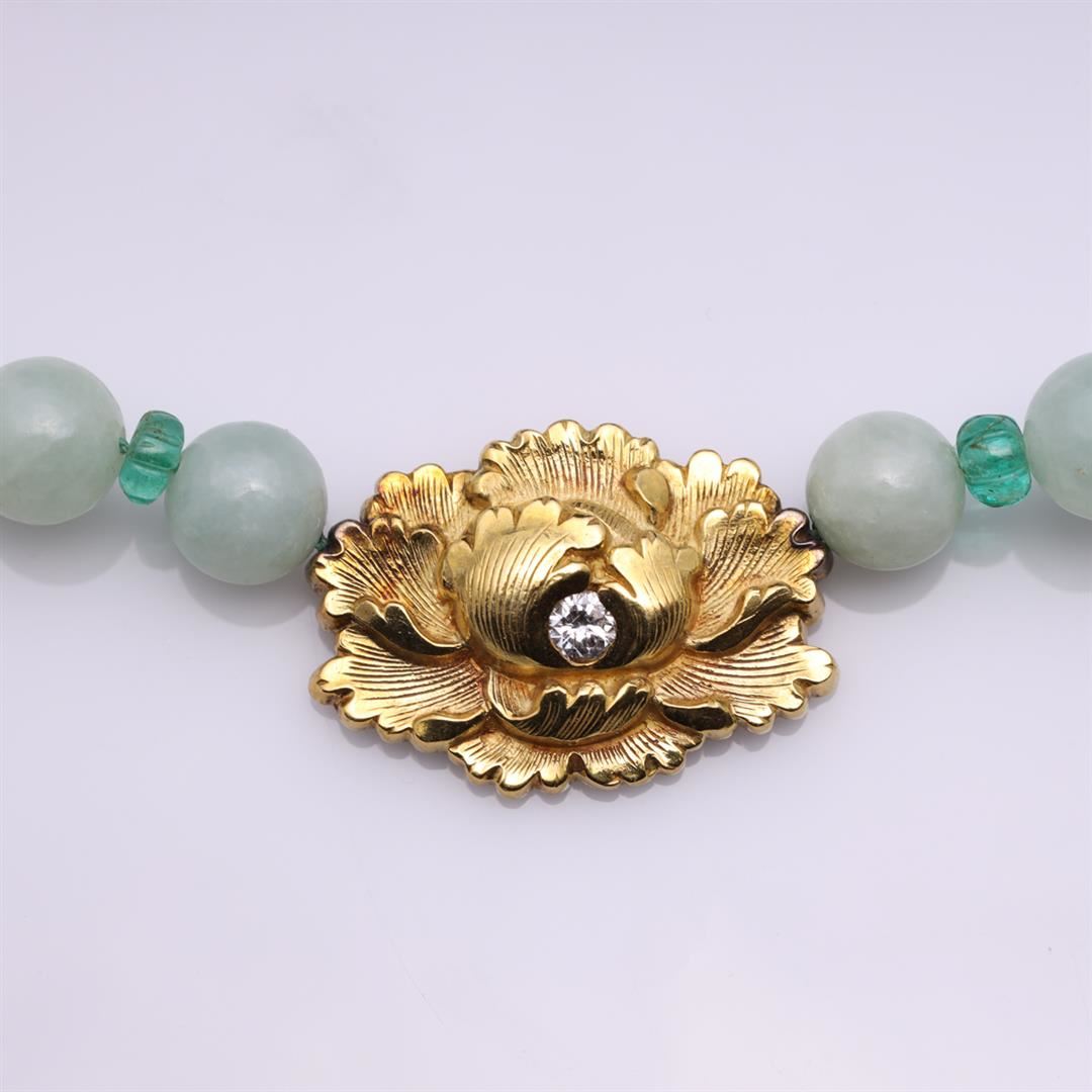 Jadeite, Emerald & 18K Gold Necklace by R. L. Kay. Contains one diamond weighing approximately 0.18 cts. Total weight of 64.8 gm. Estimated retail value $3,600.