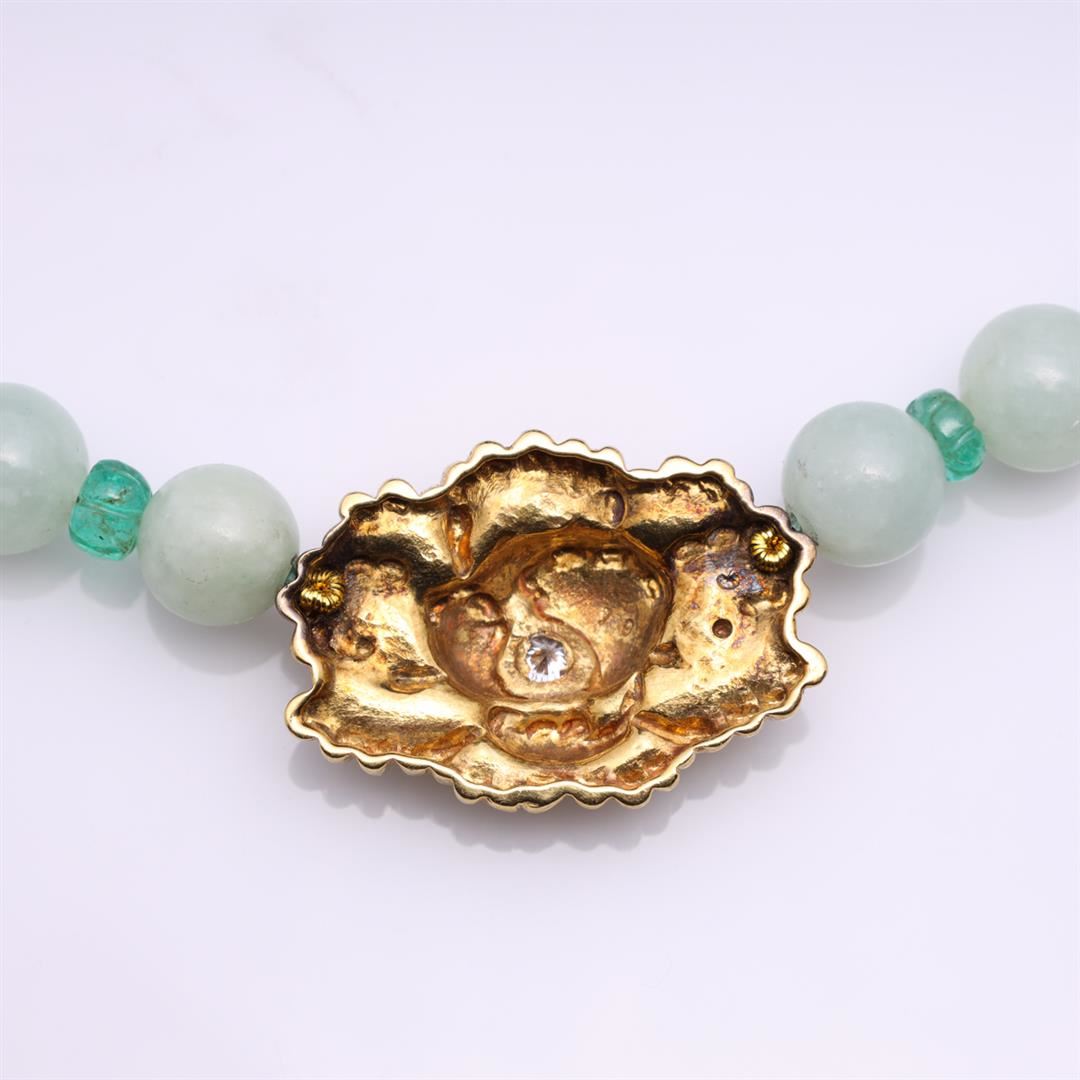 Jadeite, Emerald & 18K Gold Necklace by R. L. Kay. Contains one diamond weighing approximately 0.18 cts. Total weight of 64.8 gm. Estimated retail value $3,600.