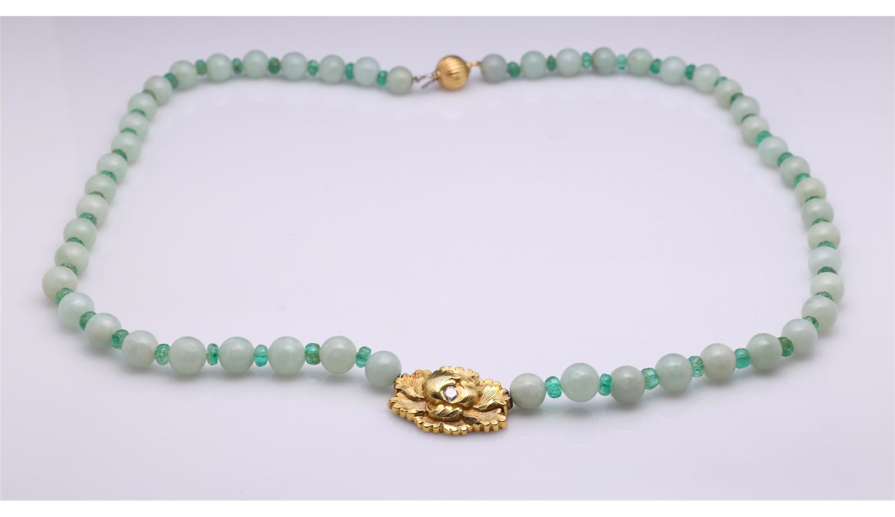 Jadeite, Emerald & 18K Gold Necklace by R. L. Kay. Contains one diamond weighing approximately 0.18 cts. Total weight of 64.8 gm. Estimated retail value $3,600.