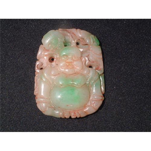 19th.century jadeite carving featuring a carving in high relief featuring Buddha surrounded by ling zhi. The reverse side has decorations in bas relief. Size: 2.8" X 2" (7 cm. X 5 cm.). Estimated value $1500.