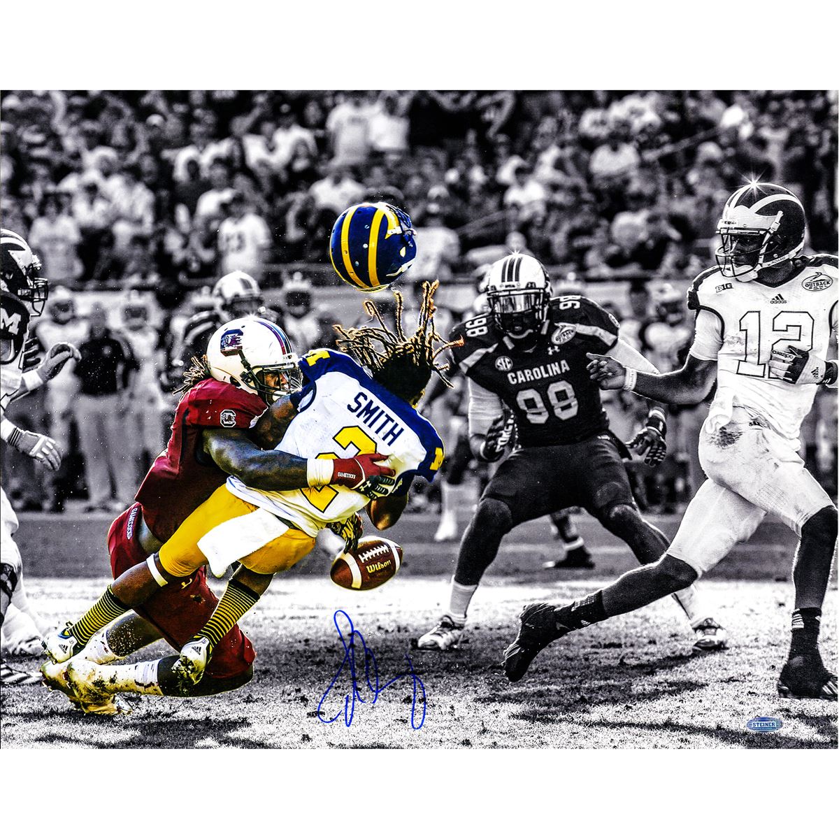 Jadeveon Clowney Hit vs. Michigan Signed BW 16x20 Photo w/ Color Accents