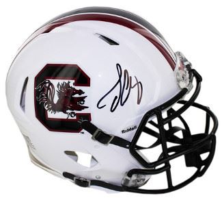 Jadeveon Clowney played college football at the University of South Carolina. A unanimous College All-American as a sophomore in 2012, Clowney set South Carolina school records in quarterback sacks and tackles for a loss per season while also earning Defensive Player of the Year honors in the Southeastern Conference. Described by ESPN as "one of those rare game-changers on defense",Clowney is projected to be a top-5 selection in the 2014 NFL Draft. Jadeveon Clowney has hand signed this South Carolina Gamecocks Full Size Riddell Speed Authentic Helmet. Steiner Hologram and Certificate of Authenticity.