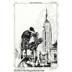 <B>Jae Lee - Terminator: The Dark Years #3 Cover Original Art (Dark Horse, 1999).</B></I> "It's New Year's Eve, 1999. With the new millennium right around the corner, the people in Times Square are having one fantastic party. Little do they know that a Terminator has just crashed it! Programmed to seek out and liquidate the young John Connor in the present, the Terminator takes to the streets of New York City, gunning down anyone that gets in the way of its mission..." Jae Lee has captured this scenario-to-be perfectly with his evocative design. Very fine pen lines contrast sharply with large black areas in the drawing -- a snappy style! The art is in Excellent condition. There are no logos or type elements, and the cover art is exceptionally clean. <BR><BR><B>Important notice:</B> Heritage usually auctions material at the rate of 200-250 lots per hour. On some occasions eBay Live bid software or the Internet may not be able to keep up with the pace of the auction. We recommend placing a realistic absentee bid now as insurance to avoid disappointment. Occasionally the auctioneer may eliminate or reject an eBay Live bid, and the auctioneer may also reopen a lot after the close of the eBay live bidding (usually because we missed an audience bid), and may reject your bid even if it shows you as the winning bidder. By bidding via eBay Live, you agree that Heritage may award the lot to another bidder at its sole discretion under the circumstances described above or any other reasonable circumstances. Since eBay bids are not shown to us until we open the lot on the floor, we treat those bids just like floor bids. In most cases the floor responds before the eBay bid is presented to us, due to Internet lag time, so for consistency we have made it a policy that floor bids are always considered first over tie eBay live bids. Also please note that all Heritage lots purchased through eBay Live carry a 20% Buyer's Premium. Please make sure you read the Terms and Conditions before you bid. </span></font></tr></table></td></tr></table>