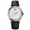 Model: 1303520 - CASE = [Material:18kt White Gold], [Case Diameter:39], [Case Thickness:9.2mm], [Bezel:Fixed 18kt White Gold], [Case Back:Transparent], [Water Resistant:50 Meters - 150 Feet], [Crystal:Scratch Resistant Sapphire], DIAL = [Color:Silver], MOVEMENT = [Type:Automatic Self Winding], [Crown:Pull/Push], BAND = [Clasp:Tang Buckle], [Type:Black Alligator Leather], (Usually ships in 1 to 2 weeks.)