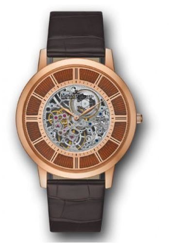 Model: 13425SQ - CASE = [Material:18kt Rose Gold], [Case Diameter:38], [Case Thickness:3.6mm], [Water Resistant:30 Meters- 100 Feet], [Crystal:Sapphire],; DIAL = [Color:Silver Grained Skeleton],; MOVEMENT = [Type:Manual Winding],; BAND = [Clasp:Tang], [Type:Brown Alligator Leather], (Usually ships in 1 to 2 weeks.)