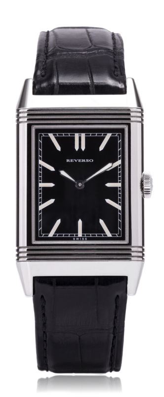 Model: Q2788570 - CASE = [Material:Polished Stainless Steel], [Case Diameter:27.5], [Case Thickness:7.2mm], [Case Back:Solid], [Water Resistant:30 Meters - 100 Feet], [Crystal:Scratch Resistant Sapphire], DIAL = [Color:Black], MOVEMENT = [Type:Manual Winding], BAND = [Clasp:Tang Buckle], [Type:Crocodile Black Leather], (Usually ships in 1 to 2 weeks.)